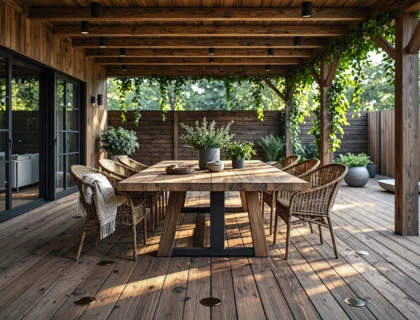 - Girlandy świetlne (Cotton Balls, żarówki Edison): To absolutny hit ostatnich lat. Zawieszone na balustradzie, pod sufitem czy oplatające pergolę, dają ciepłe, delikatne światło, które od razu wprowadza romantyczny nastrój.